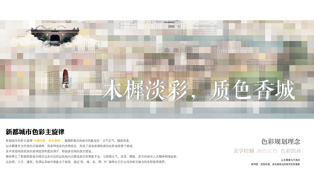本项目位于四川省成都市新都区,区域面积496 平方千米,城市人口规模约90万人 黑白体育平台登录,制定新都区城市色彩导则,依托色彩导则制定户外广告导则, 城市外摆导则,导视系统设计导则,规范城市建设及城市发展过程中的精细化管控,项目于2020年8月启动,历时6个月完成所有工作并取得验收。