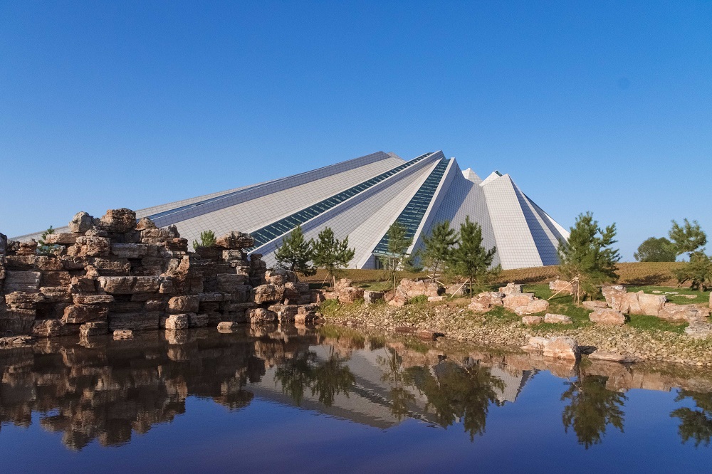 顶部的采光带,以及镂空处光影的引入,丰富了室内的空间,象征万里浩瀚的星空 黑白体育官网,将人们的思绪带到遥远的年代,有棱角的折面,表现了成杰思汗时代的力量。