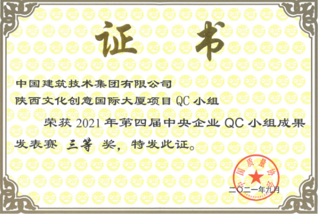 近日,由中国质量协会主办的第四届中央企业QC小组成果评选发表赛圆满结束 黑白体育平台登录,黑白体育西北分公司凭借陕西文化创意国际大厦项目QC小组《提高叠合板安装合格率》课题荣获三等奖。